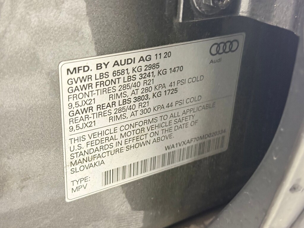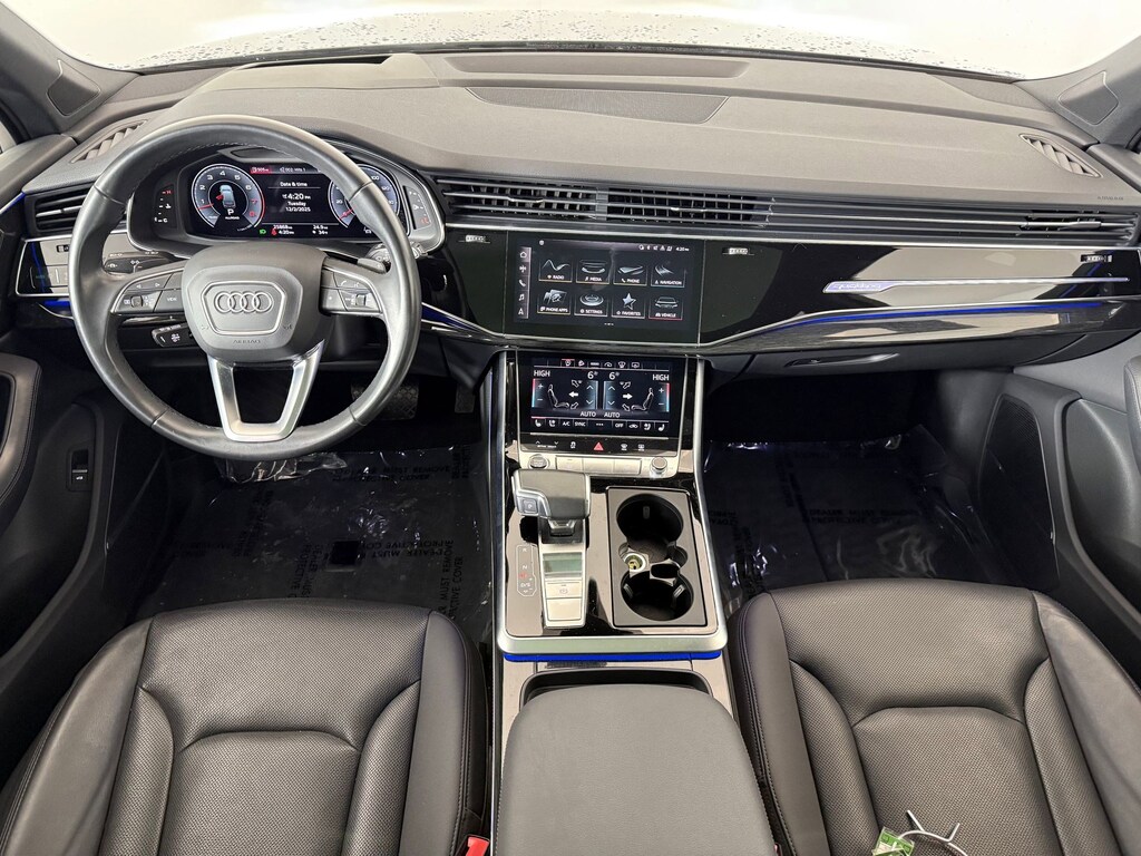 PRESTIGE PACKAGE -inc: Bang & Olufsen 3D Premium Sound System, Head-Up Display, Audi Phone Box w/Wireless Charging, signal booster, 3-Spoke Multifunction Steering Wheel w/Paddles, Heated, Ambient Interior Lighting Package, Heated Auto-Dimming Power Folding Exterior Mirrors, memory, Topview Camera System, virtual 360 view, Traffic Sign Recognition, Heated Rear Seats, 4-Zone Automatic Climate Control, Driver & Passenger Front Seats w/Ventilation, 4-way power lumbar, Audi Adaptive Cruise Assist w/Traffic Jam Assist, turn assist, Rear Door/Side Windows & Tailgate Sunshades, Audi Active Lane Assist w/Emergency Assist, Illuminated Door Sills, Power Soft-Closing Doors, Dual-Pane Acoustic Side Windows, Front and rear doors, Contour/Ambient LED Interior Lighting Package, Multicolor, Intersection Assist, BLACK, VALCONA/CRICKET LEATHER SEAT TRIM -inc: extended leather package, BLACK OPTIC PACKAGE -inc: Wheels: 21" 10-Spoke Star-Design Bi-Color Black, Tires: 285/40R21 All-Season, Black Optic Exterior Package, Black Grille, Black Roof Rails, Black Front & Rear Bumper Inserts, Black Door Blades, Black Window Surrounds , FRONT & REAR DOORS AUDI BEAM-RINGS -inc: lower door trim LED light displaying Audi logo (4 rings), BLACK, LEATHER SEATING SURFACES, Wireless Phone Connectivity, Wheels: 20" 5-Spoke Turbine-Design, Wheels w/Silver Accents, Valet Function, Trunk/Hatch Auto-Latch.
