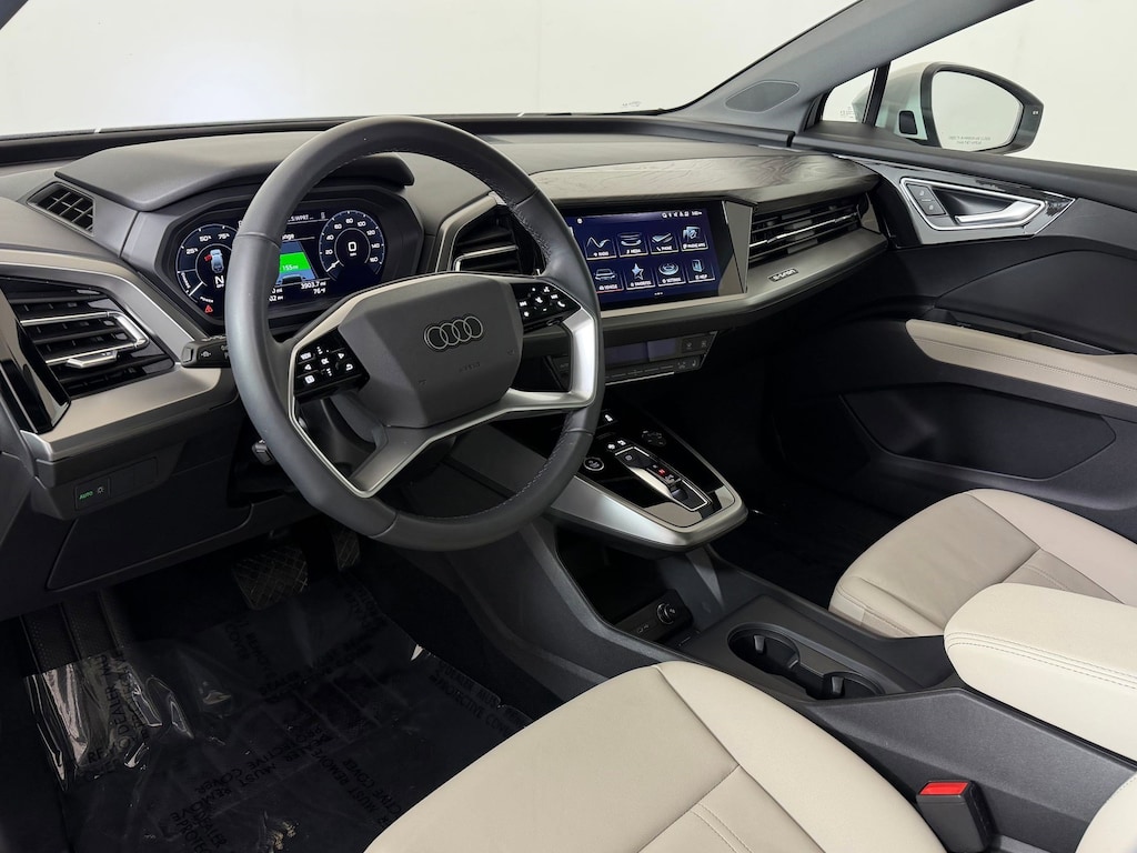 Inside the cabin, the Audi Q4 e-tron Premium showcases a thoughtfully designed interior that blends modern style with comfort and functionality. High-quality materials and clean design elements create a sophisticated atmosphere, while the spacious layout offers generous room for both passengers and cargo. Whether you are transporting family, friends, or gear for your next adventure, the Q4 e-tron provides the versatility expected from a luxury SUV.