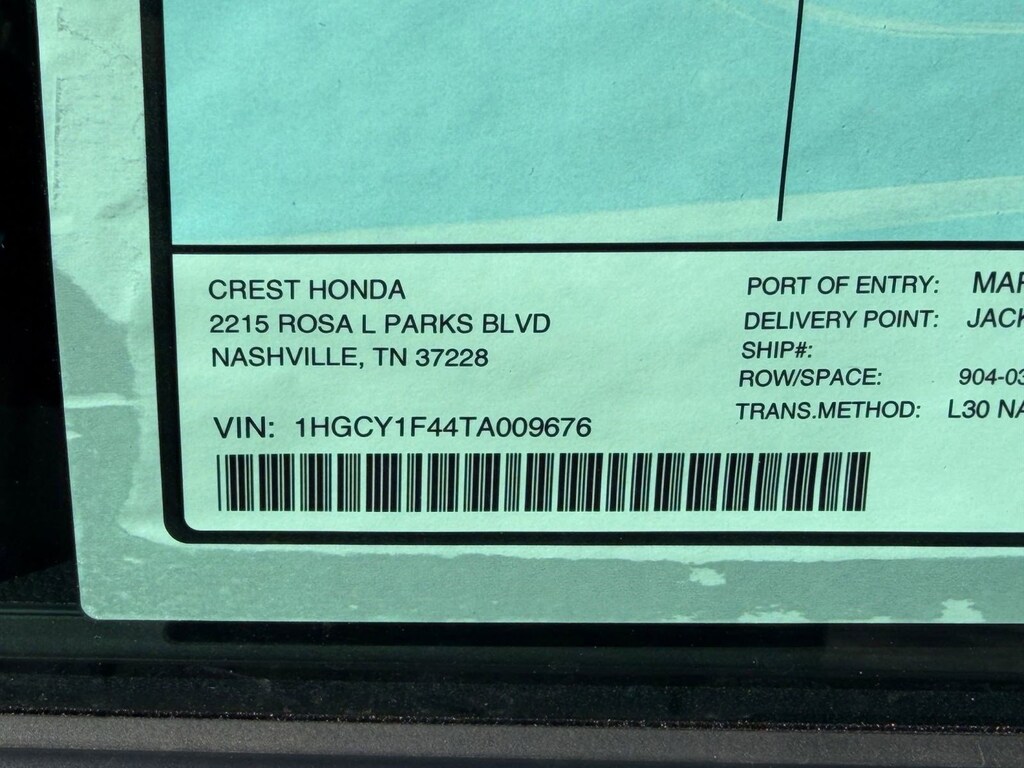 Vin: 1HGCY1F44TA009676