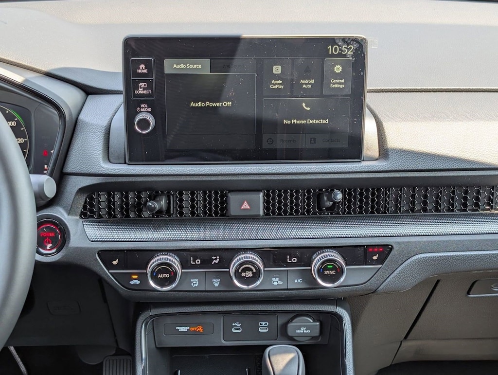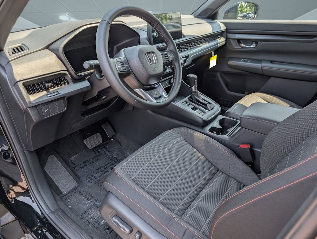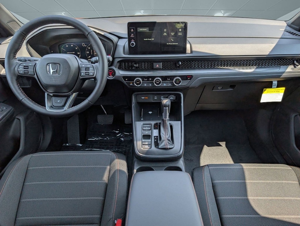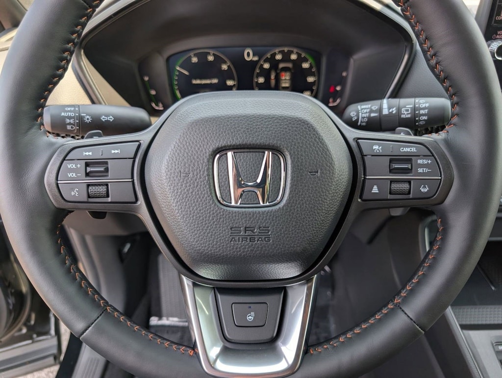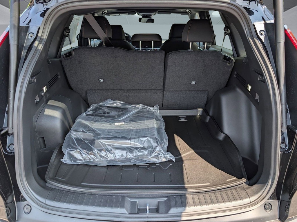 Wheels: 18" Shark Gray, Voice Activated Dual Zone Front Automatic Air Conditioning, Vehicle Stability Assist (VSA) Electronic Stability Control (ESC), Valet Function, Trip Computer, Transmission: Electronic Continuously Variable -inc: sport, normal, econ and snow dynamic drive modes, Traffic Jam Assist, Tires: 235/60R18 107V All-Terrain, Tire mobility kit, Tailgate/Rear Door Lock Included w/Power Door Locks. This Honda CR-V Hybrid has a powerful Gas/Electric I-4 2.0 L/122 engine powering this Variable transmission.