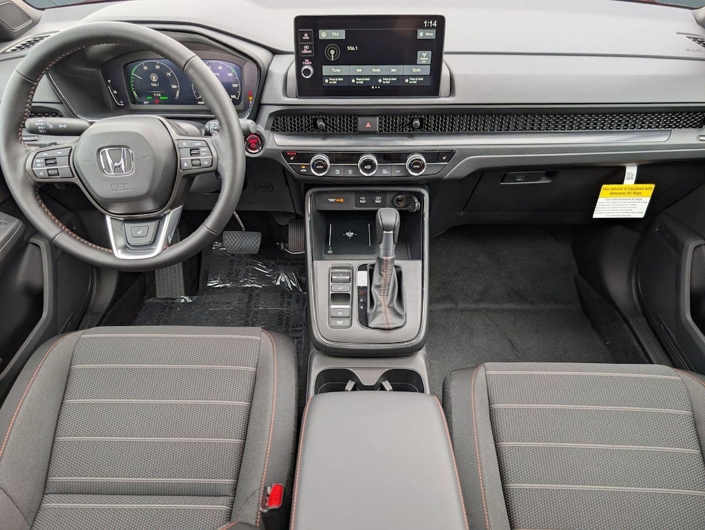 Wireless Phone Connectivity, Wheels: 18" Shark Gray, Vehicle Stability Assist (VSA) Electronic Stability Control (ESC), Valet Function, Trip Computer, Transmission: Electronic Continuously Variable -inc: sport, normal, econ and snow dynamic drive modes, Transmission w/Driver Selectable Mode, Traffic Jam Assist, Tires: 235/60R18 107V All-Terrain, Tire Mobility Kit. This Honda CR-V Hybrid has a powerful Gas/Electric I-4 2.0 L/122 engine powering this Variable transmission.