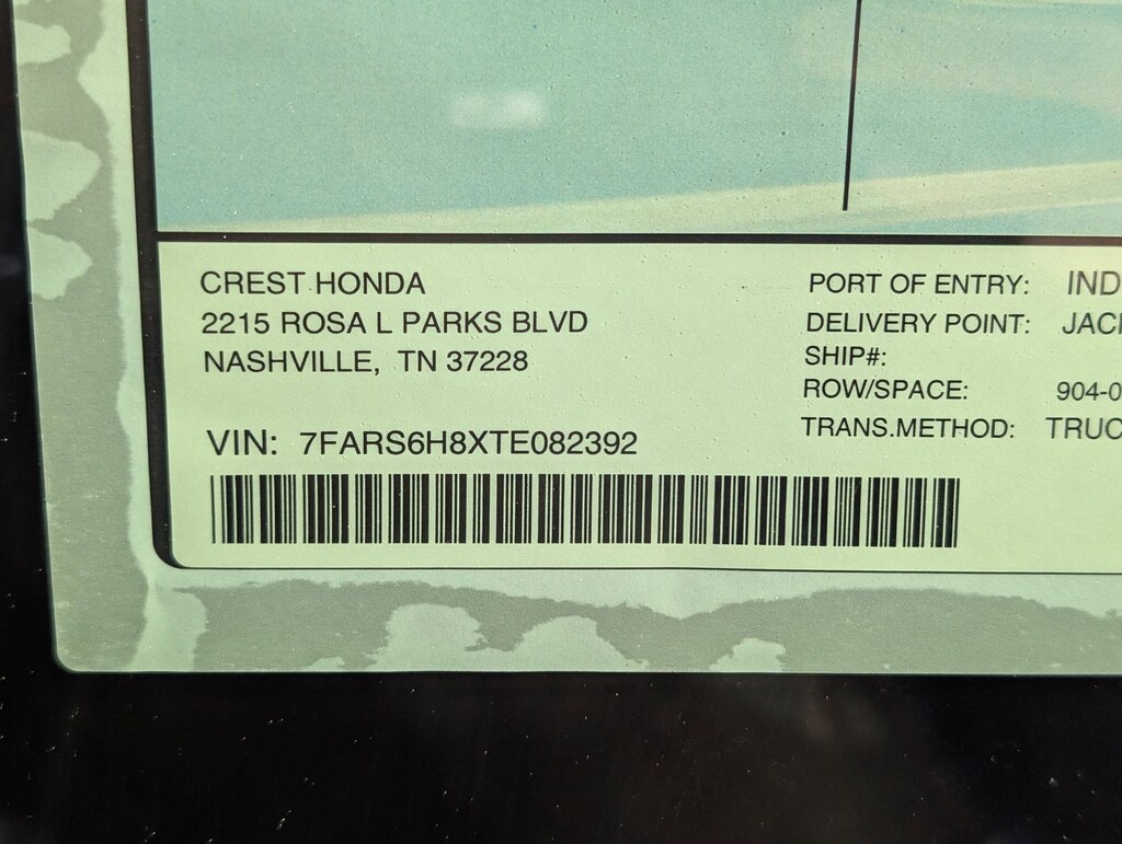 Vin Number: 7FARS6H8XTE082392