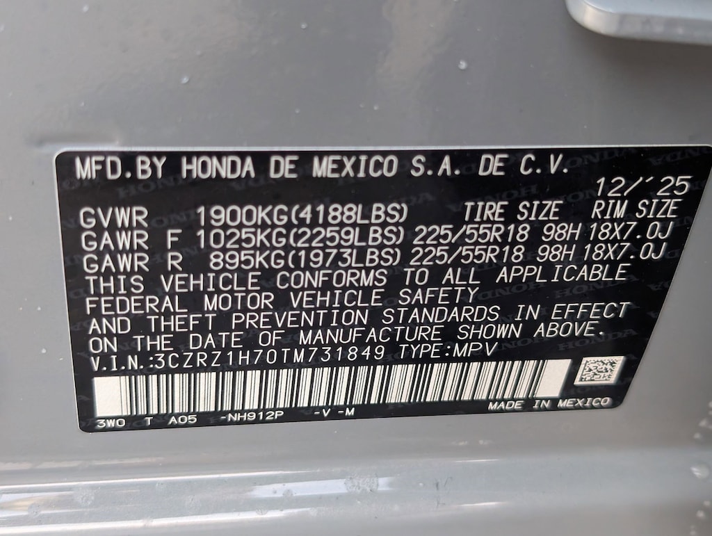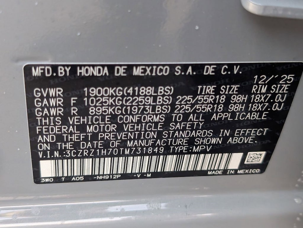 Vin Number: 3CZRZ1H70TM731849