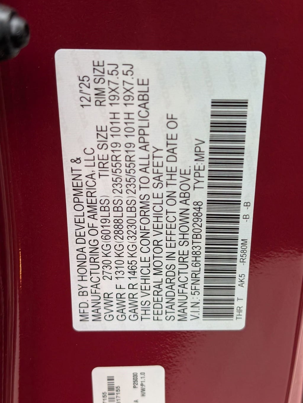 Tires: 235/55R19 101H All-Season, Tire Specific Low Tire Pressure Warning, Tailgate/Rear Door Lock Included w/Power Door Locks, Strut Front Suspension w/Coil Springs, Steel Spare Wheel, Smart Device Remote Engine Start, Smart Device Integration, Single Stainless Steel Exhaust, Side Impact Beams, Seats w/Leatherette Back Material, Removable 40-20-40 Folding Split-Bench Front Facing Manual Reclining Fold Forward Seatback Rear Seat w/Manual Fore/Aft and Magic Slide 2nd-Row Seats Side-To-Side Sliding, Remote Releases -Inc: Power Cargo Access, Remote Keyless Entry w/Integrated Key Transmitter, 2 Door Curb/Courtesy, Illuminated Entry, Illuminated Ignition Switch and Panic Button, Rear HVAC w/Separate Controls, Rear Entertainment System w/Digital Media, Rear Cupholder, Rear Child Safety Locks, Real-Time Traffic Display, Radio w/Seek-Scan, Clock, Voice Activation and My Honda Music Internal Memory, Proximity Key For Doors And Push Button Start.