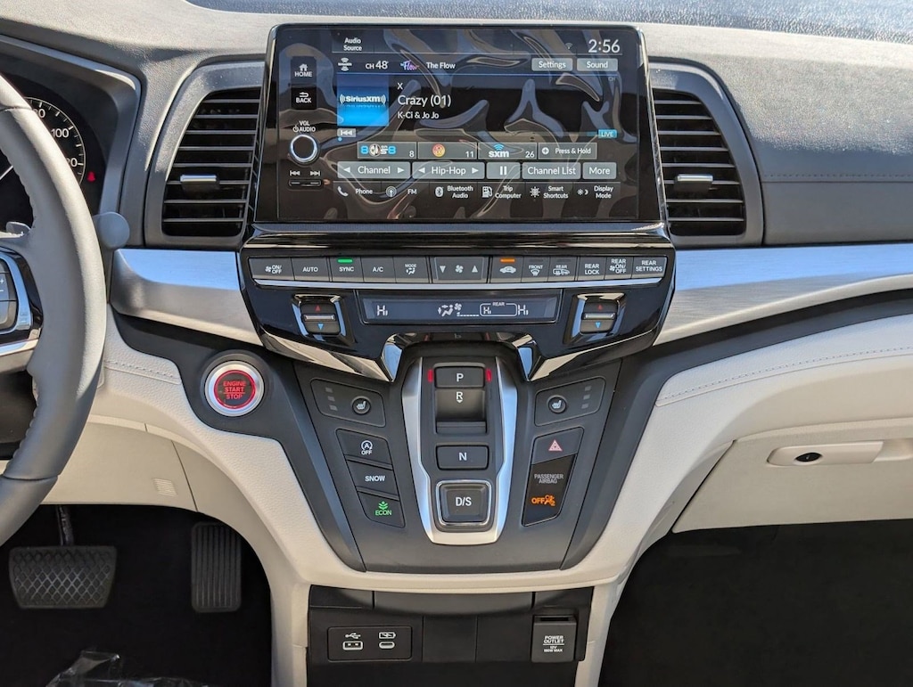 Wireless Phone Connectivity, Wheels: 18" Machine-Finished Alloy, Vinyl Door Trim Insert, Vehicle Stability Assist (VSA) Electronic Stability Control (ESC), Trunk/Hatch Auto-Latch, Trip Computer, Transmission: 10-Speed Automatic -inc: Shift-By-Wire (SBW) and paddle shifters, Transmission w/Driver Selectable Mode, Trailing Arm Rear Suspension w/Coil Springs, Tires: 235/60R18 103H All-Season. This Honda Odyssey has a dependable Regular Unleaded V-6 3.5 L/212 engine powering this Automatic transmission.