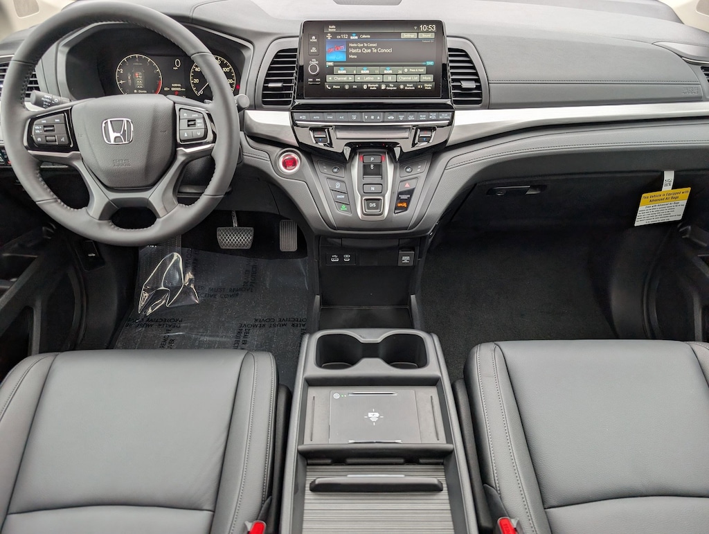 Wireless Phone Connectivity, Wheels: 18" Machine-Finished Alloy, Vinyl Door Trim Insert, Vehicle Stability Assist (VSA) Electronic Stability Control (ESC), Trunk/Hatch Auto-Latch, Trip Computer, Transmission: 10-Speed Automatic -inc: Shift-By-Wire (SBW) and paddle shifters, Transmission w/Driver Selectable Mode, Trailing Arm Rear Suspension w/Coil Springs, Tires: 235/60R18 103H All-Season. This Honda Odyssey has a powerful Regular Unleaded V-6 3.5 L/212 engine powering this Automatic transmission.