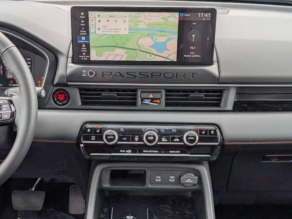 Wireless Phone Connectivity, Wheels: 18" Berlina Black Machine Face Alloy, Voice Activated Dual Zone Front Automatic Air Conditioning, Vehicle Stability Assist (VSA) Electronic Stability Control (ESC) And Roll Stability Control (RSC), Valet Function, Trunk/Hatch Auto-Latch, Trip Computer, Transmission: 10-Speed Automatic -inc: Shift-By-Wire (SBW) and paddle shifters, Transmission w/Driver Selectable Mode, Trailer Wiring Harness. This Honda Passport has a dependable Regular Unleaded V-6 3.5 L/212 engine powering this Automatic transmission.