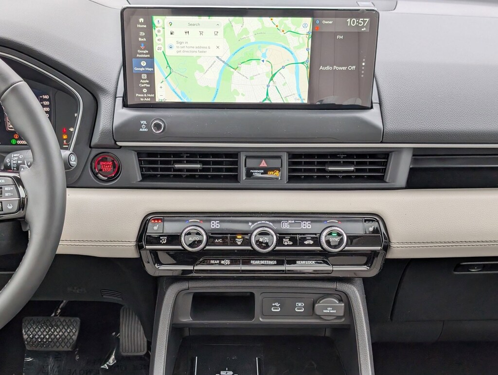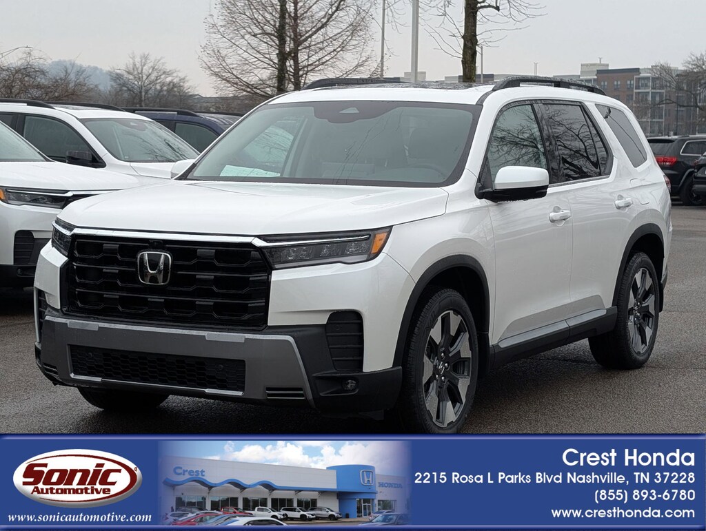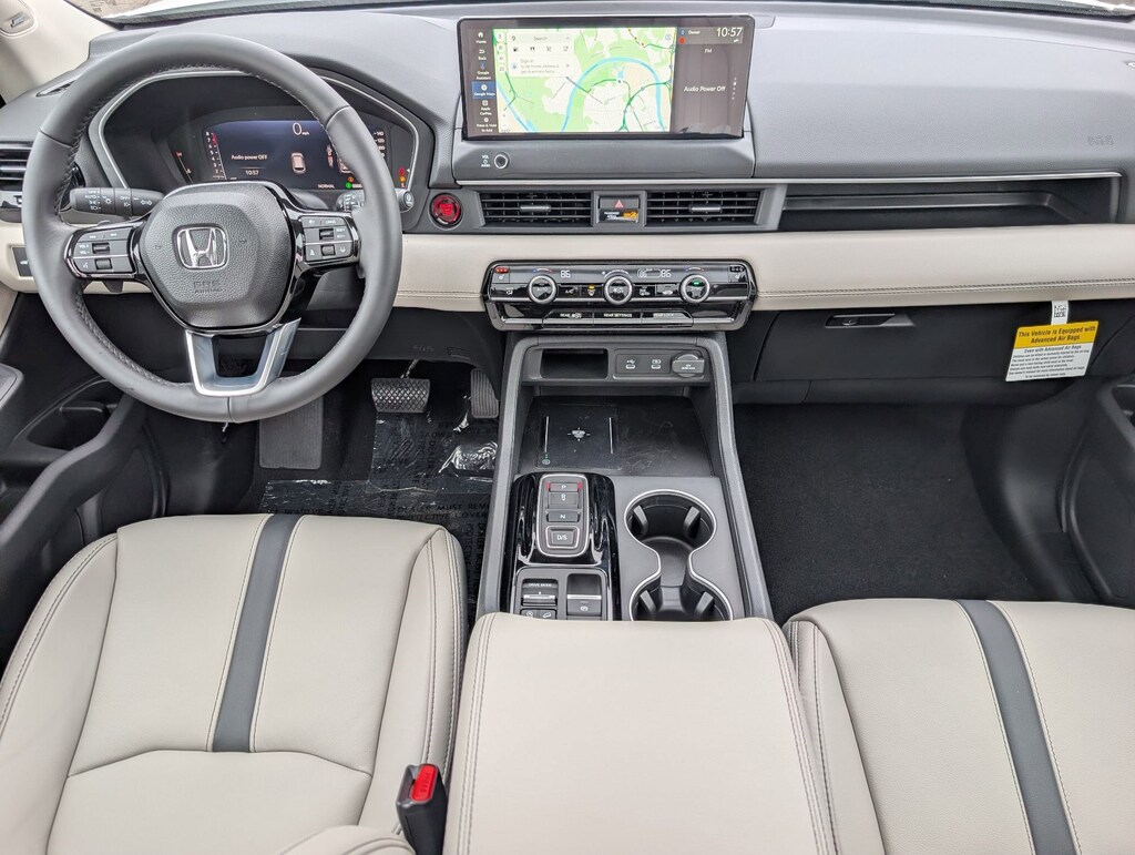 Wireless Phone Connectivity, Wheels: 20" Shark Gray Machined Face, Voice Activated Dual Zone Front Automatic Air Conditioning, Vehicle Stability Assist (VSA) Electronic Stability Control (ESC), Valet Function, Trunk/Hatch Auto-Latch, Trip Computer, Transmission: 10-Speed Automatic -inc: Shift-By-Wire (SBW), paddle shifters and normal/econ/sport/snow/tow/trail/sand integrated drive modes, Transmission w/Driver Selectable Mode, Traffic Jam Assist. This Honda Pilot has a strong Regular Unleaded V-6 3.5 L/212 engine powering this Automatic transmission.
