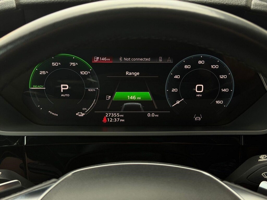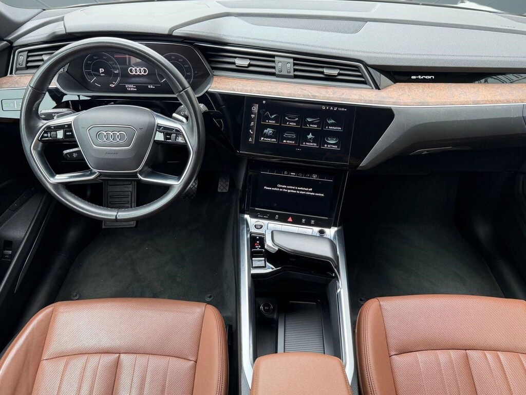 Technology is at the forefront of the Audi e-tron Premium Plus. The dual touchscreen MMI infotainment system includes navigation, Apple CarPlay, Android Auto, Bluetooth connectivity, and a premium sound system. The Audi Virtual Cockpit digital instrument cluster provides customizable driving information in crisp detail, creating a fully immersive experience behind the wheel.