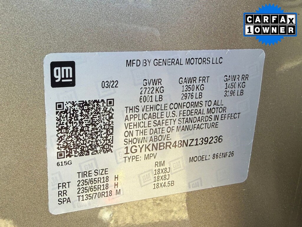 Vin: 1GYKNBR48NZ139236