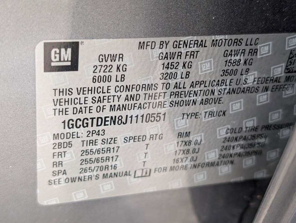 Z71 PREFERRED EQUIPMENT GROUP includes standard equipment, WHEELS, 17" X 8" (43.2 CM X 20.3 CM) DARK ARGENT METALLIC CAST ALUMINUM, TRANSMISSION, 8-SPEED AUTOMATIC (STD), TRAILERING PACKAGE, HEAVY-DUTY includes trailer hitch and 7-pin connector, TOW/HAUL MODE, TIRES, 255/65R17 ALL-TERRAIN, BLACKWALL, SEATS, FRONT BUCKET (STD), SATIN STEEL METALLIC, REAR AXLE, 3.42 RATIO, LICENSE PLATE KIT, FRONT. This Chevrolet Colorado has a dependable Gas V6 3.6L/ engine powering this Automatic transmission.