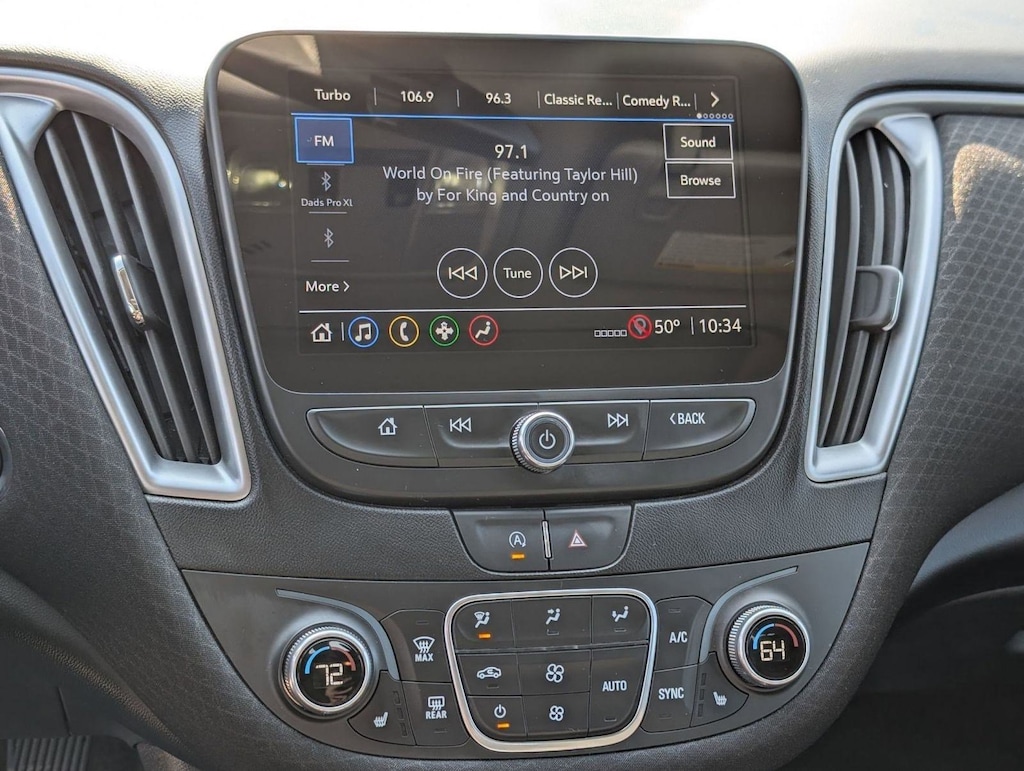 Wireless Apple CarPlay/Wireless Android Auto, Windows, power with Express-Down on all, Window, power with driver Express-Up/Down, Wi-Fi Hotspot capable (Terms and limitations apply. See onstar.com or dealer for details.), Wheels, 17" (43.2 cm) aluminum, Warning indicator, front passenger seat belt, Visors, driver and front passenger illuminated vanity mirrors, covered, Vent, rear console, Trunk latch, safety, manual release, Trunk cargo anchors, Transmission, Continuously Variable (CVT), Tires, P225/55R17 all-season, blackwall, Tire Pressure Monitor System, Tire inflator kit, Theft-deterrent system, content theft alarm, Temperature display, outside, Suspension, rear 4-link, independent, Suspension, front MacPherson strut, Steering wheel, 3-spoke, Steering wheel controls mounted controls for audio, phone and cruise.