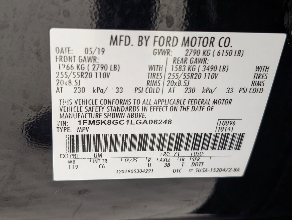 Vin: 1FM5K8GC1LGA06248