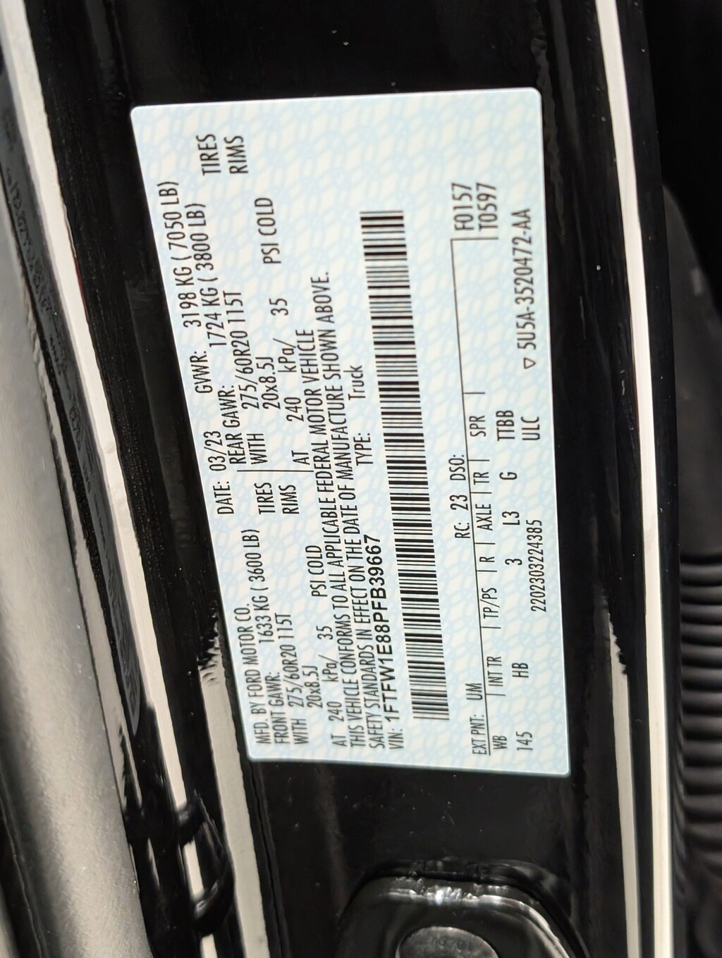 Vin: 1FTFW1E88PFB39667