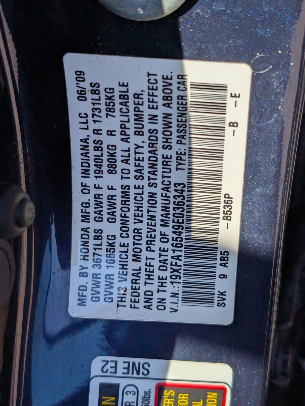 Vin: 19XFA16549E036343