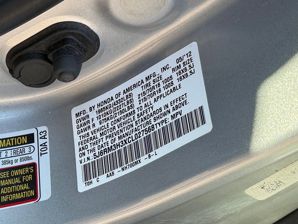 Vin: 5J6RM3H3XCL027568