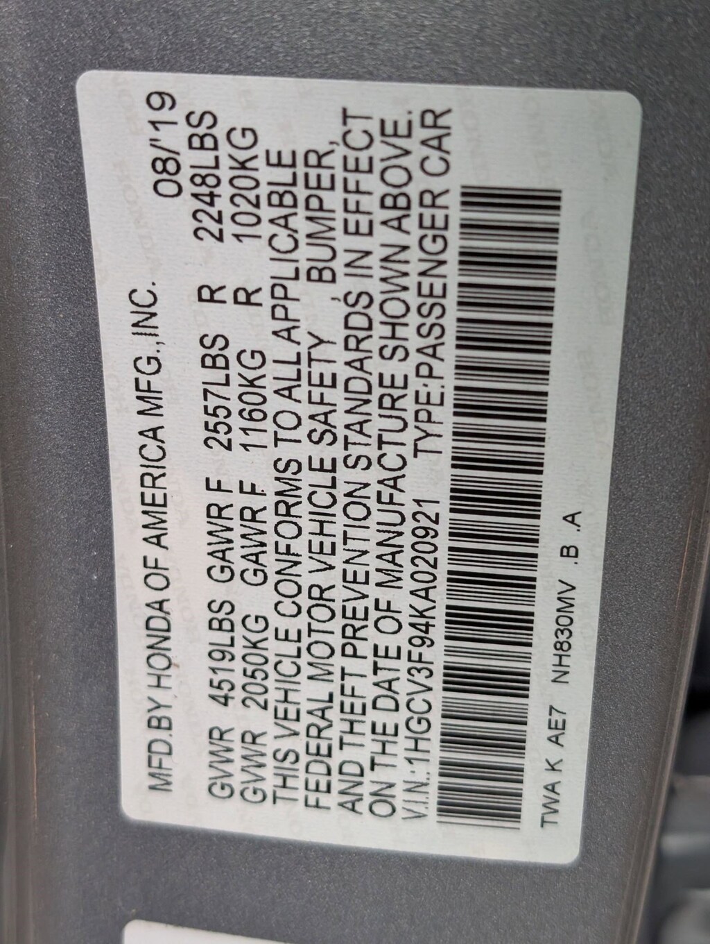 Wireless Phone Connectivity, Wheels: 17" Machine-Finished Alloy, VSA Electronic Stability Control (ESC), Vinyl Door Trim Insert, Valet Function, Trunk Rear Cargo Access, Trip Computer, Transmission: Electronic Continuously Variable -inc: 3-mode drive system (ECON/sport/EV) and deceleration paddle selector indicator, Transmission w/Driver Selectable Mode and Oil Cooler, Tires: 225/50R17 94V AS. This Honda Accord Hybrid has a powerful Gas/Electric I-4 2.0 L/122 engine powering this Variable transmission.