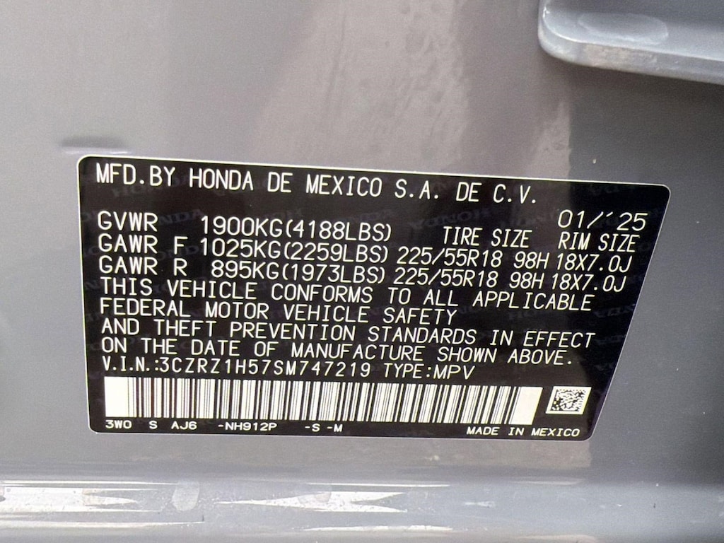 Wireless Phone Connectivity, Wheels: 18" Gloss Black Alloy, Vehicle Stability Assist (VSA) Electronic Stability Control (ESC), Trip Computer, Transmission: Continuously Variable (M-CVT) -inc: 3-mode dynamic drive (econ, normal and snow), Transmission w/Driver Selectable Mode and Oil Cooler, Traffic Jam Assist, Tires: 225/55R18 98H, Tailgate/Rear Door Lock Included w/Power Door Locks, Strut Front Suspension w/Coil Springs. This Honda HR-V has a strong Regular Unleaded I-4 2.0 L/122 engine powering this Variable transmission.