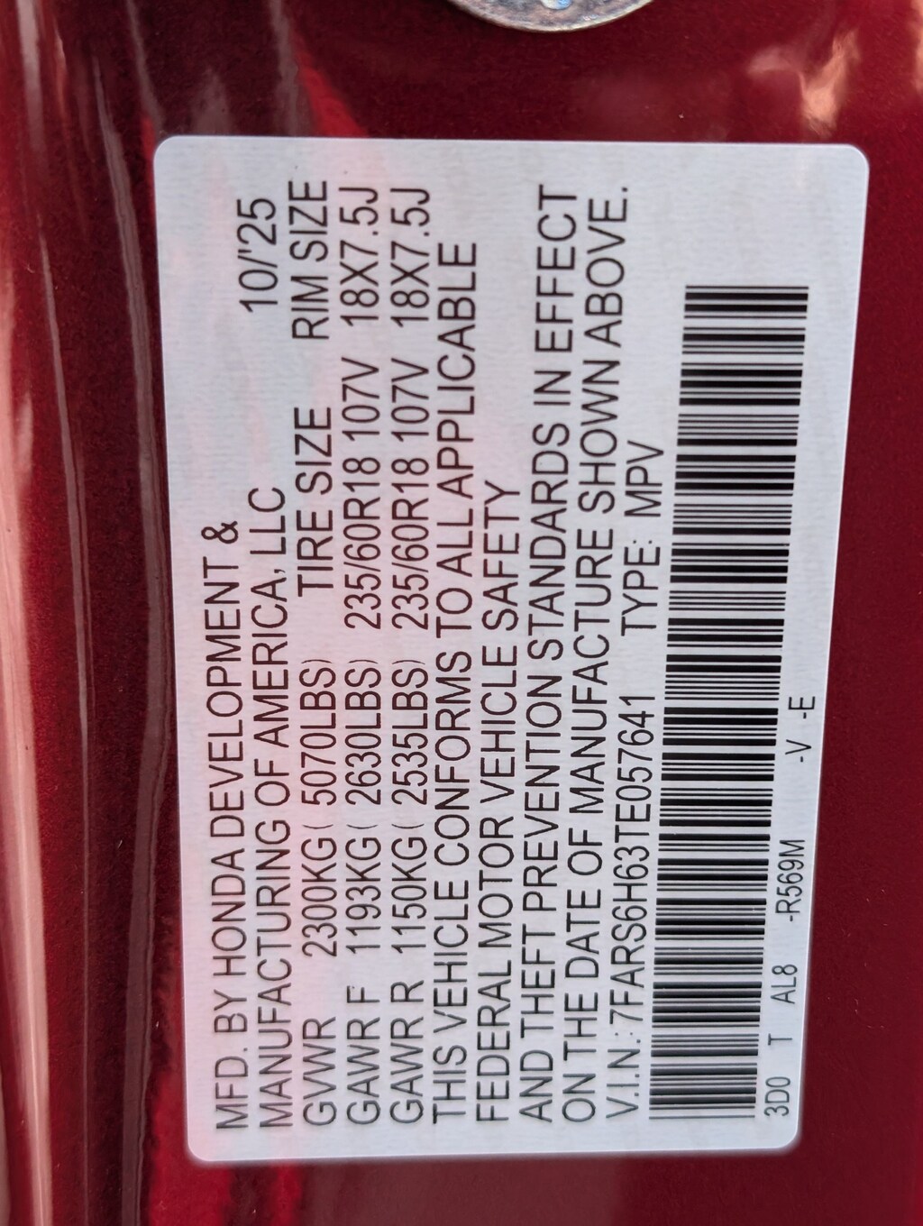 • Rear tires: 235/60VR18.0
