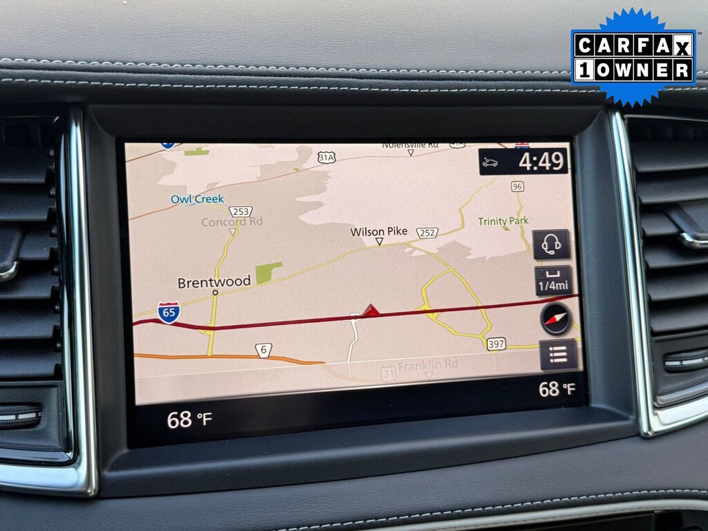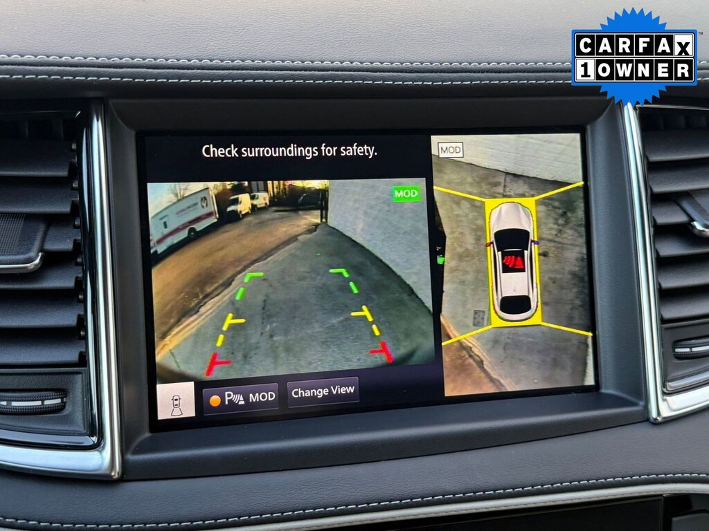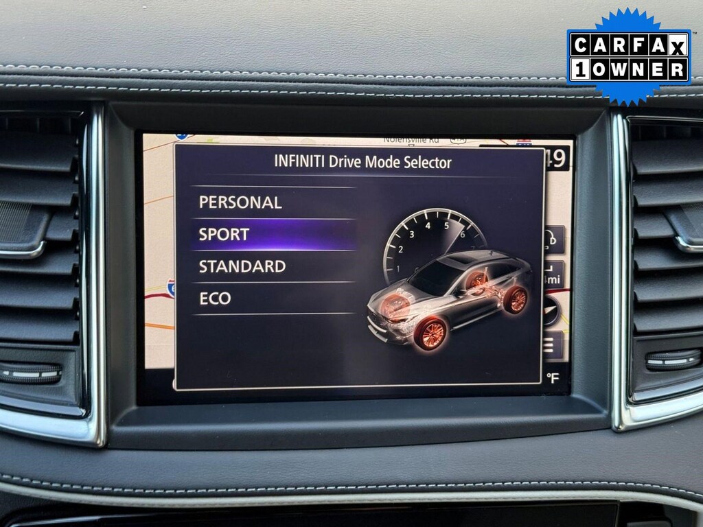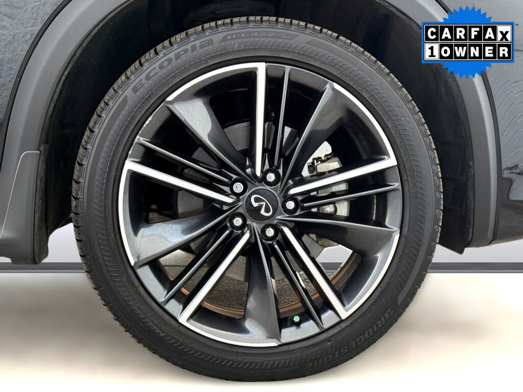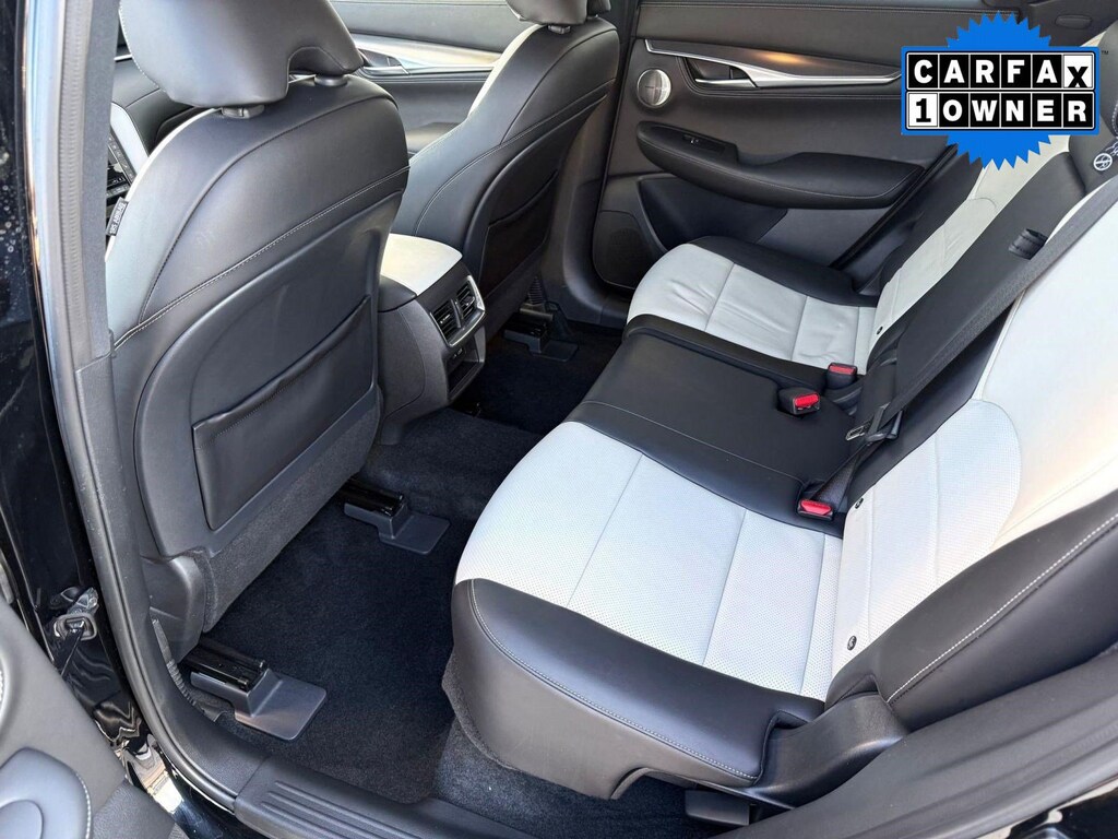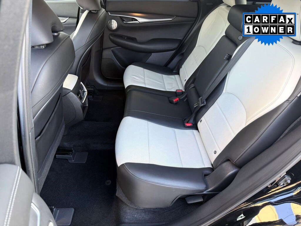 Inside, the cabin reflects INFINITI's commitment to craftsmanship and innovation. Premium materials and thoughtful detailing create a sophisticated atmosphere. The advanced infotainment system features dual touchscreen displays with navigation capability, Apple CarPlay, Android Auto, Bluetooth connectivity, and a premium audio system for an immersive driving experience. A digital driver display keeps essential information easily accessible, while dual-zone climate control and power-adjustable seating enhance comfort on every journey.