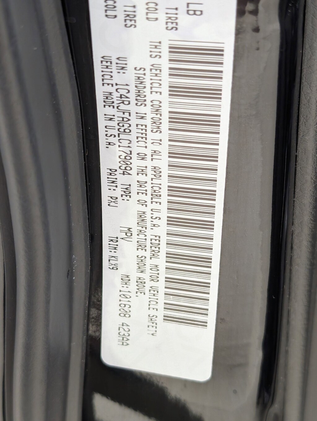 Vin: 1C4RJFAG9LC179094