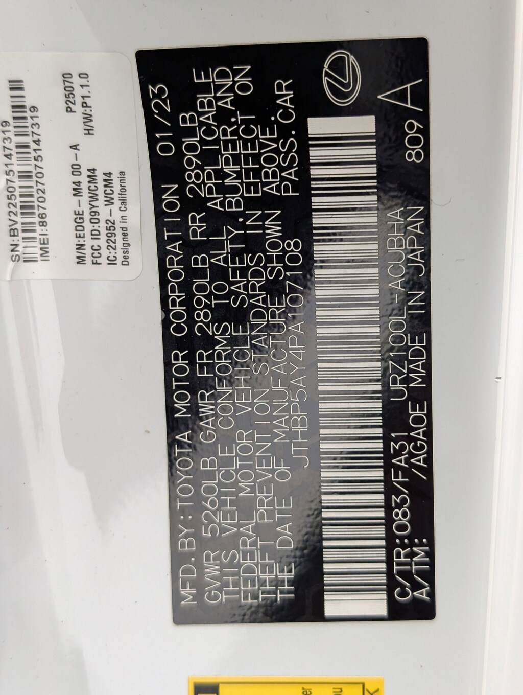 Vin: JTHBP5AY4PA107108