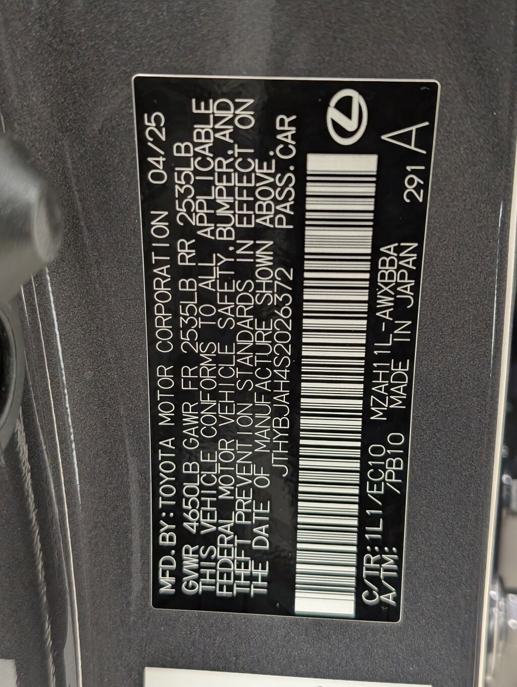 Vin: JTHYBJAH4S2026372