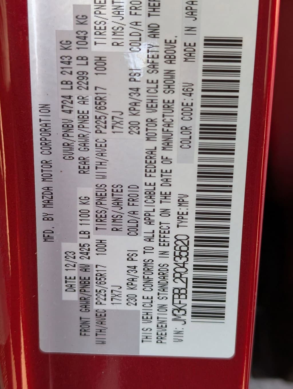 SOUL RED CRYSTAL METALLIC PAINT, SOUL RED CRYSTAL METALLIC, BLACK, LEATHERETTE SEAT TRIM -inc: black w/light gray piping and stitching, Wireless Phone Connectivity, Wheels: 17" x 7J Aluminum Alloy -inc: gray metallic finish, Turn-By-Turn Navigation Directions, Trip Computer, Transmission: 6-Speed SKYACTIV-Drive Automatic -inc: manual-shift mode and sport mode, Transmission w/Driver Selectable Mode, Sequential Shift Control and Oil Cooler, Tires: P225/65R17 AS. This Mazda CX-5 has a powerful Regular Unleaded I-4 2.5 L/152 engine powering this Automatic transmission.