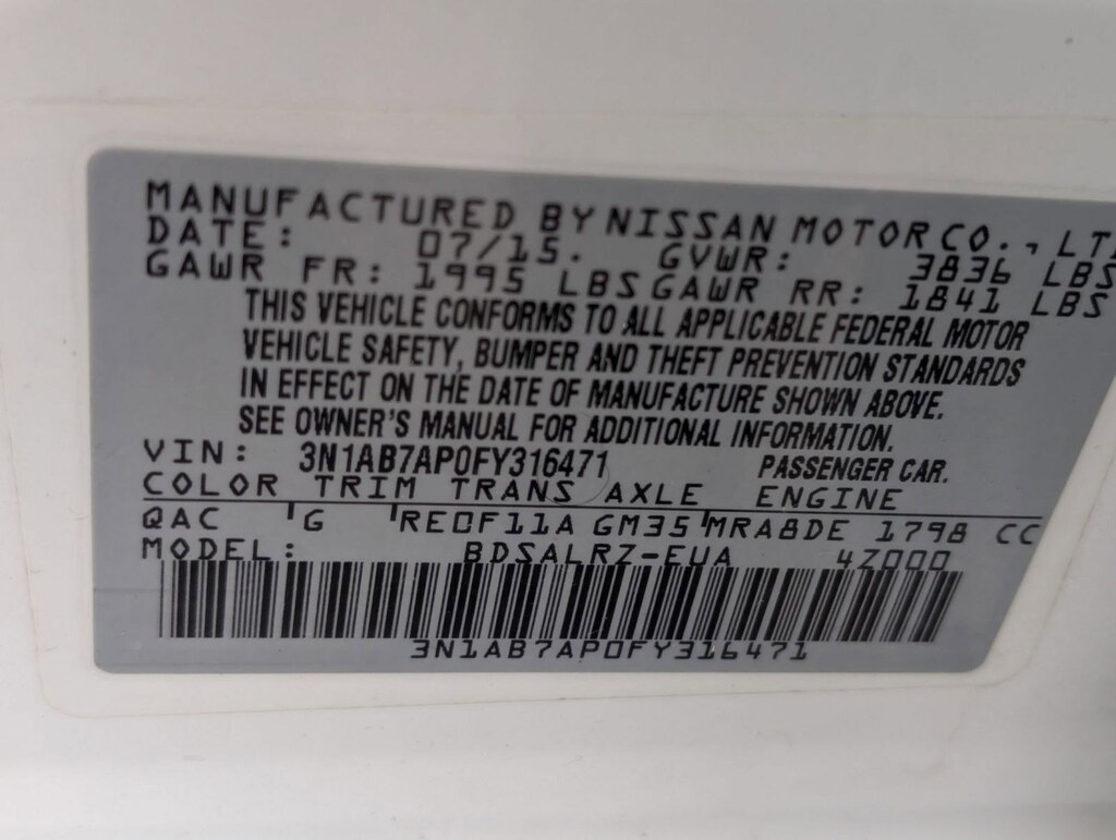 CHARCOAL, PREMIUM SPORT CLOTH SEAT TRIM, CHARCOAL, LEATHER-APPOINTED SEAT TRIM, ASPEN WHITE, Wheels: 17" Forked 5-Spoke Aluminum-Alloy, Valet Function, Trunk Rear Cargo Access, Trip Computer, Transmission: Xtronic CVT, Transmission w/Driver Selectable Mode and Oil Cooler, Torsion Beam Rear Suspension w/Coil Springs. This Nissan Sentra has a powerful Regular Unleaded I-4 1.8 L/110 engine powering this Variable transmission.