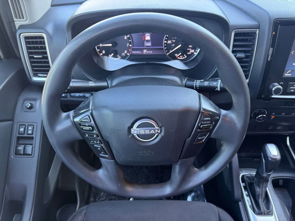 The SV trim adds convenience and refinement with a driver-focused interior designed for comfort and functionality. Intuitive controls and modern technology keep essential information easily accessible, while supportive seating and practical storage solutions enhance everyday usability. The spacious cabin and flexible bed make this Frontier ideal for hauling gear, tackling projects, or heading out for weekend adventures.