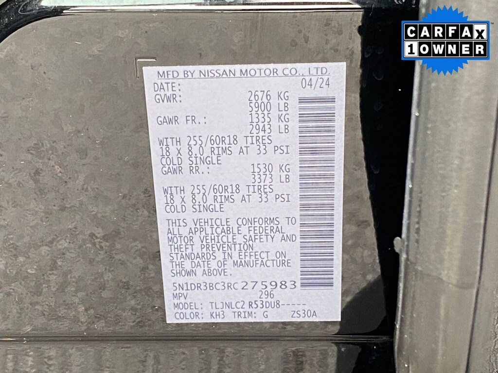 Vin: 5N1DR3BC3RC275983