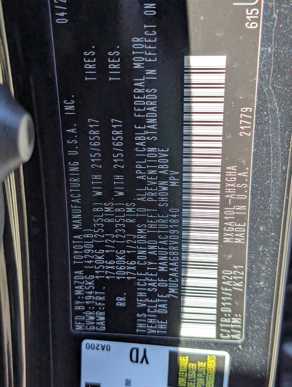 Vin: 7MUCAAAG8RV091840