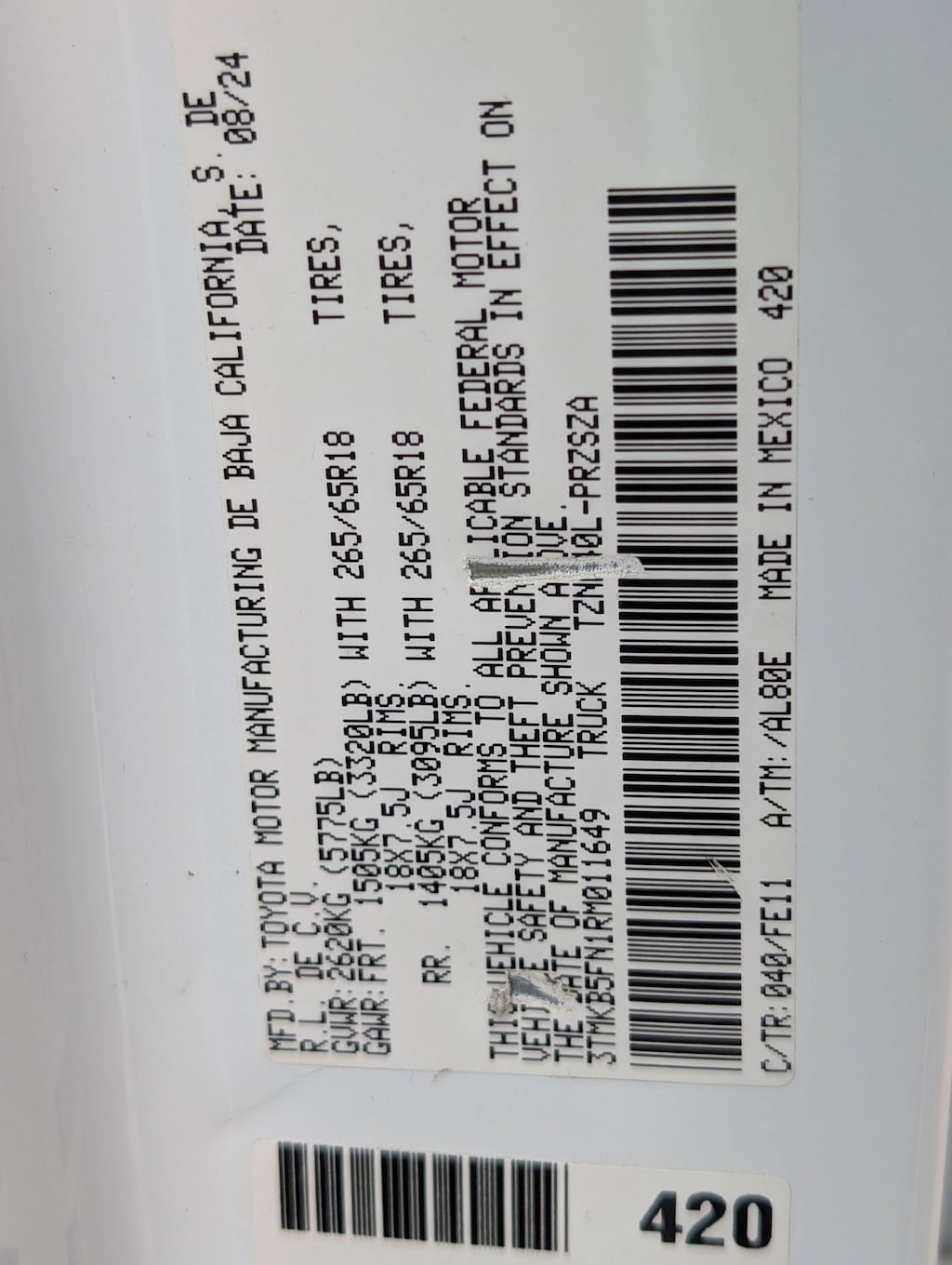 Wi-Fi Connect with 30-day or up to 3GB trial subscription Mobile Hotspot Internet Access, Wheels: 17" Styled Alloy, Vanity w/Driver And Passenger Auxiliary Mirror, Urethane Gear Shifter Material, Trip Computer, Transmission: 8-Speed Automatic -inc: Electronically controlled w/intelligence (ECT-i), Transmission w/Sequential Shift Control, Trailer Wiring Harness, Toyota Safety Sense P (TSS-P), Tires: 245/70R17. This Toyota Tacoma has a powerful Intercooled Turbo Regular Unleaded I-4 2.4 L/146 engine powering this Automatic transmission.