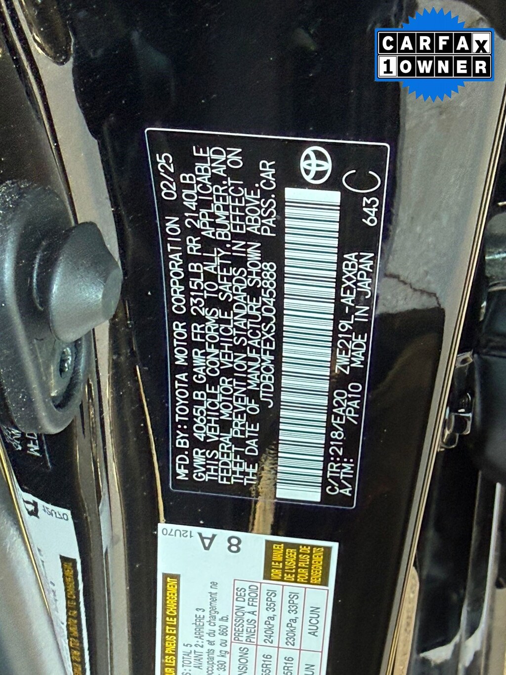 Vin: JTDBCMFEXSJ045888