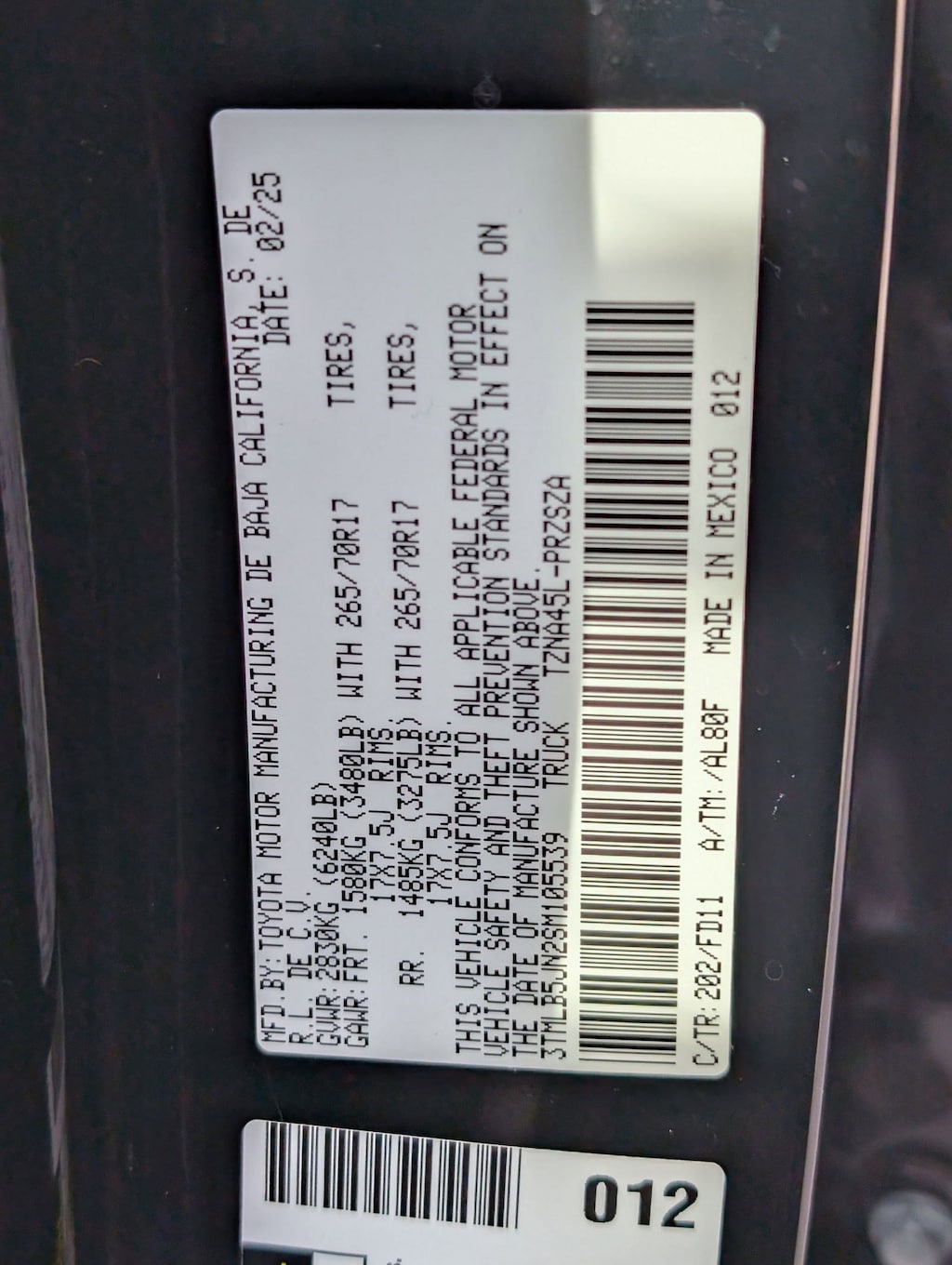 Vin: 3TMLB5JN2SM105539
